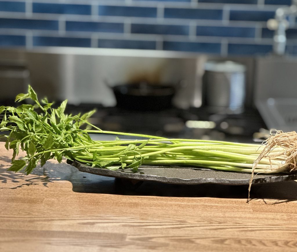 京芹 未分類 2025.03.102025.03.16 根まで美しい! 現在、ベイシスのスペシャリテの一つ『丹波黒鶏と丹波本しめじ、京芹の土瓶蒸し。 その素材のひとつである『セリ』ですが、意外と京都の方々はあまり食べない食材なんです。(スーパーにもほぼ置いてません) 中央市場で野菜を探索していたら、見つけました!それも京都産!!根まで綺麗で、栽培された地の水質の良さがわかります。 1番驚いたのは香りです!物凄い鮮烈な香りです! ベイシスでは根も入れ香りも楽しめる、滋養たっぷりの出汁料理としてお出ししてます!