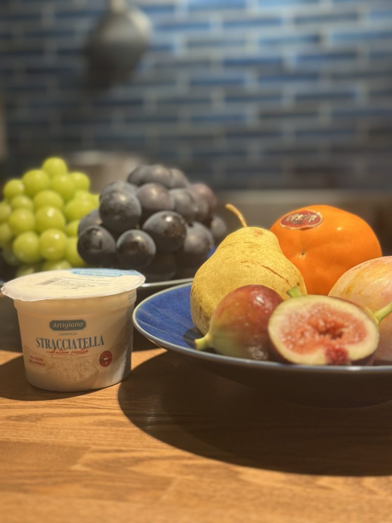 そんなフルーツにも負けないモッツァレラチーズも、本場ナポリ直送『ストラッチャテッラ』(モッツァレラ・ブッファラに水牛の生クリームを合わせてあります)を使用しております。このチーズは賞味期限がとてつもなく短いですが、味は別格です!究極のモッツァレラチーズと言っても過言はございません。